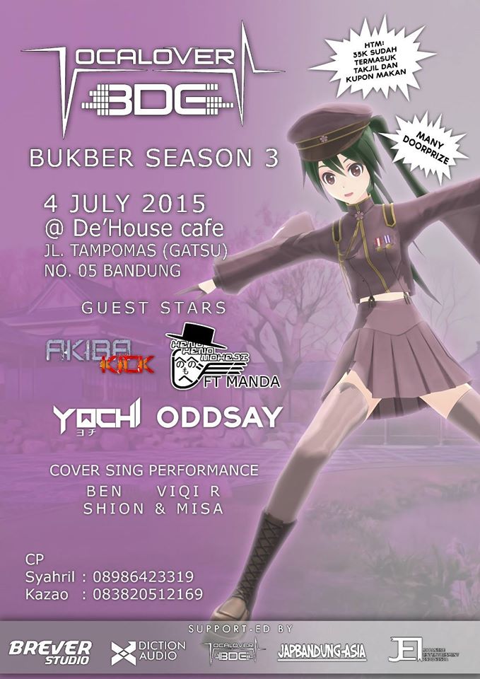 Diacaranya nanti juga kita akan di hibur bareng guest star Akiba Kick, Yocki, ODDSAY, dan Henohenomoheji Ft. Manda dari JS Navigator. Selain dari Guest Star nanti akan performance dari Ben, Viqi, dan Shinon&Misa yang akan Cover Sing buat kalian. Pasti seru buka puasa bareng ditemenin lagi-lagu dari vocaloid. Yuk segera hubungi CP untuk informasi lebih lanjut.